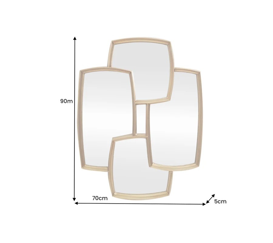 Glamour závěsné zrcadlo Mijak se čtyřmi obdélníkovými ploch s tenkým plastickým zlatým rámem 90 cm