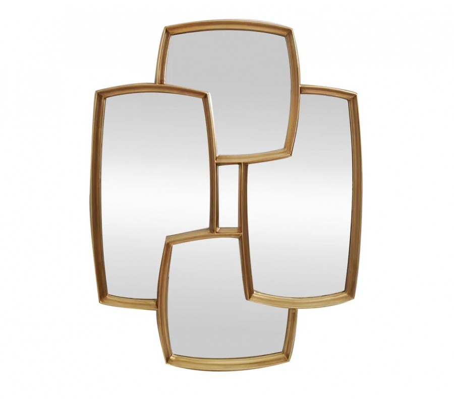 Glamour závěsné zrcadlo Mijak se čtyřmi obdélníkovými ploch s tenkým plastickým zlatým rámem 90 cm