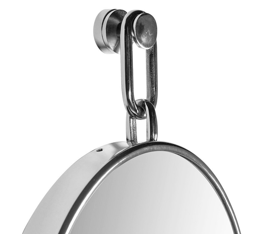 Glamour nástěnné zrcadlo Sonia je elegantní a dekorativní doplněk, který vyniká svým jemným, ale výrazným designem. Tvoří ho dvojice kulatých zrcadlových ploch v tenkém stříbrném kovovém rámu, přičemž spodní zrcadlo je větší než horní. Obě části dodává zrcadle lehký šperkově-dekorativní charakter. Horní část je zakončena praktickým hákem pro zavěšení.