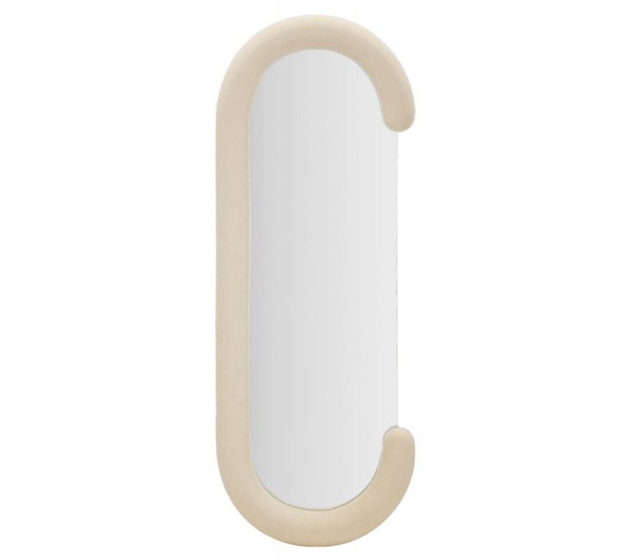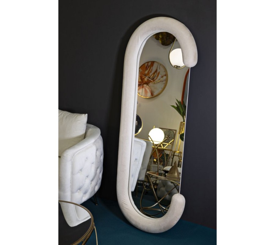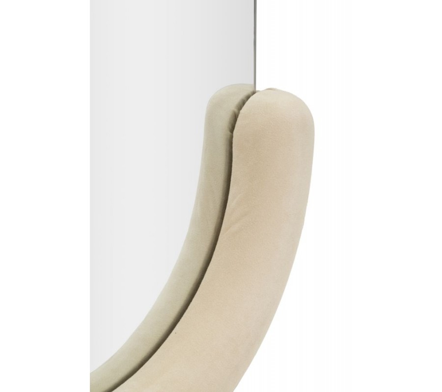 Moderní art deco oválné čalouněné zrcadlo Roza s béžovým rámem ve tvaru C se sametovým potahem 160 cm