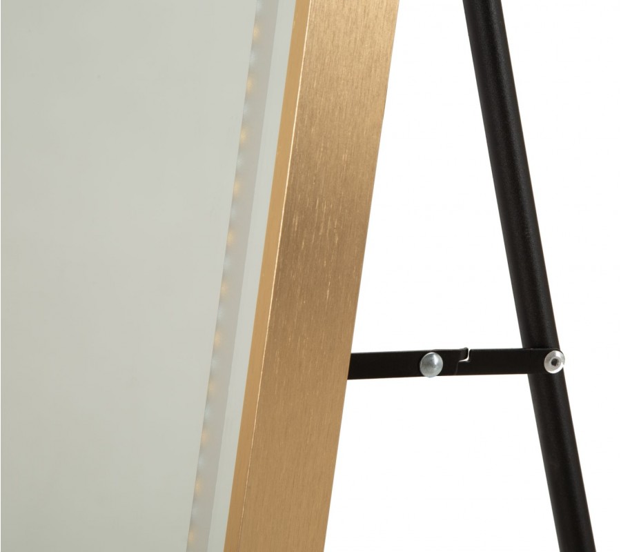 Zrcadlová plocha má vyšší štíhlou siluetu, se spodní částí ve tvaru obdélníku a vrchní částí zakřivenou do klenutého oblouku. Ohraničuje ji hladký kovový rám v lesklém zlatém provedení, který přináší do designu dotek luxusu.